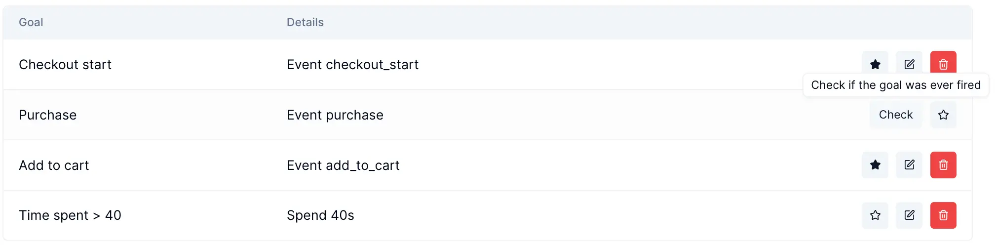 Besides that, a new button was added to goals, showing whether a goal was fired previously, helping you check whether the goal is configured correctly.